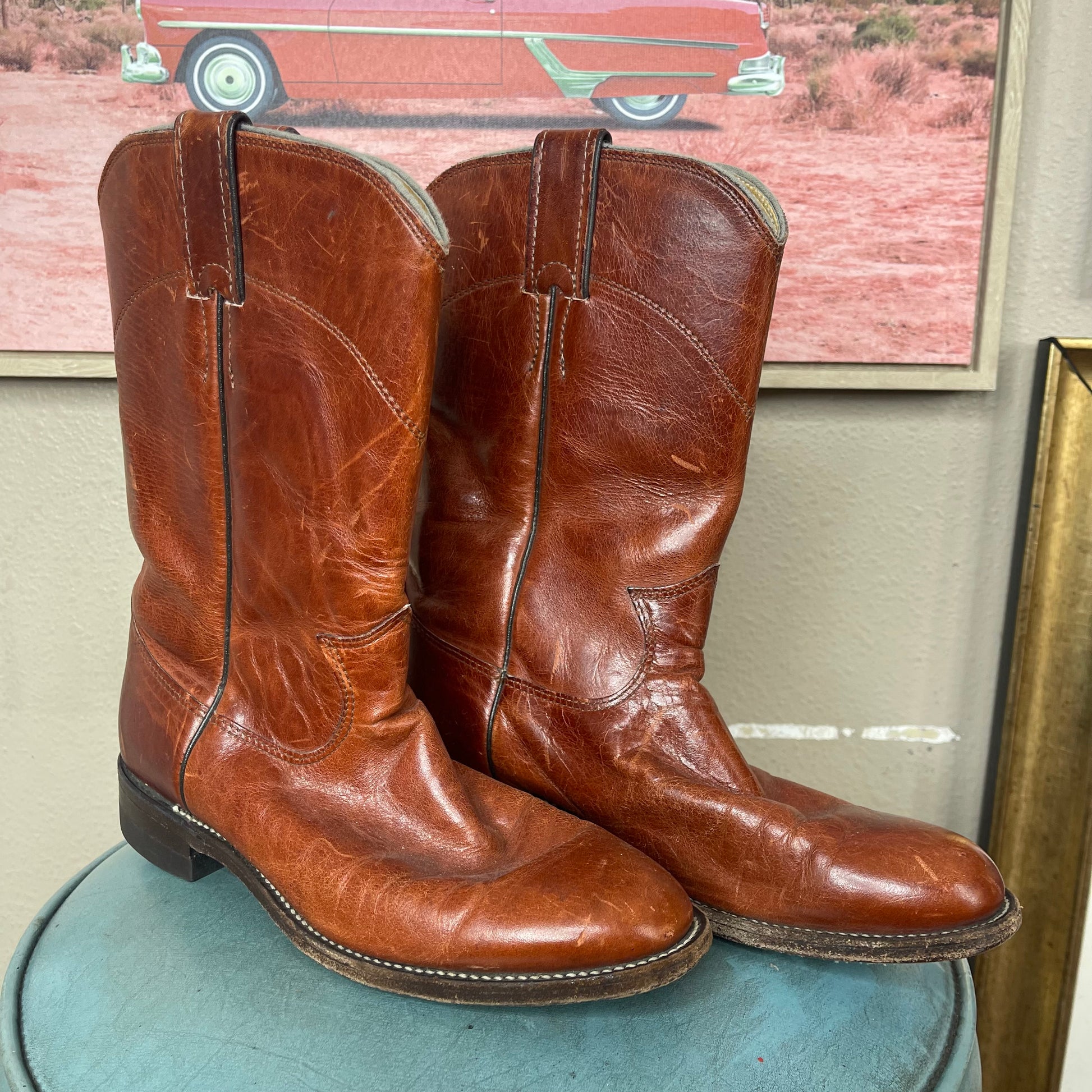 THRIFTED JUSTIN BROWN ROPER COWBOY BOOTS