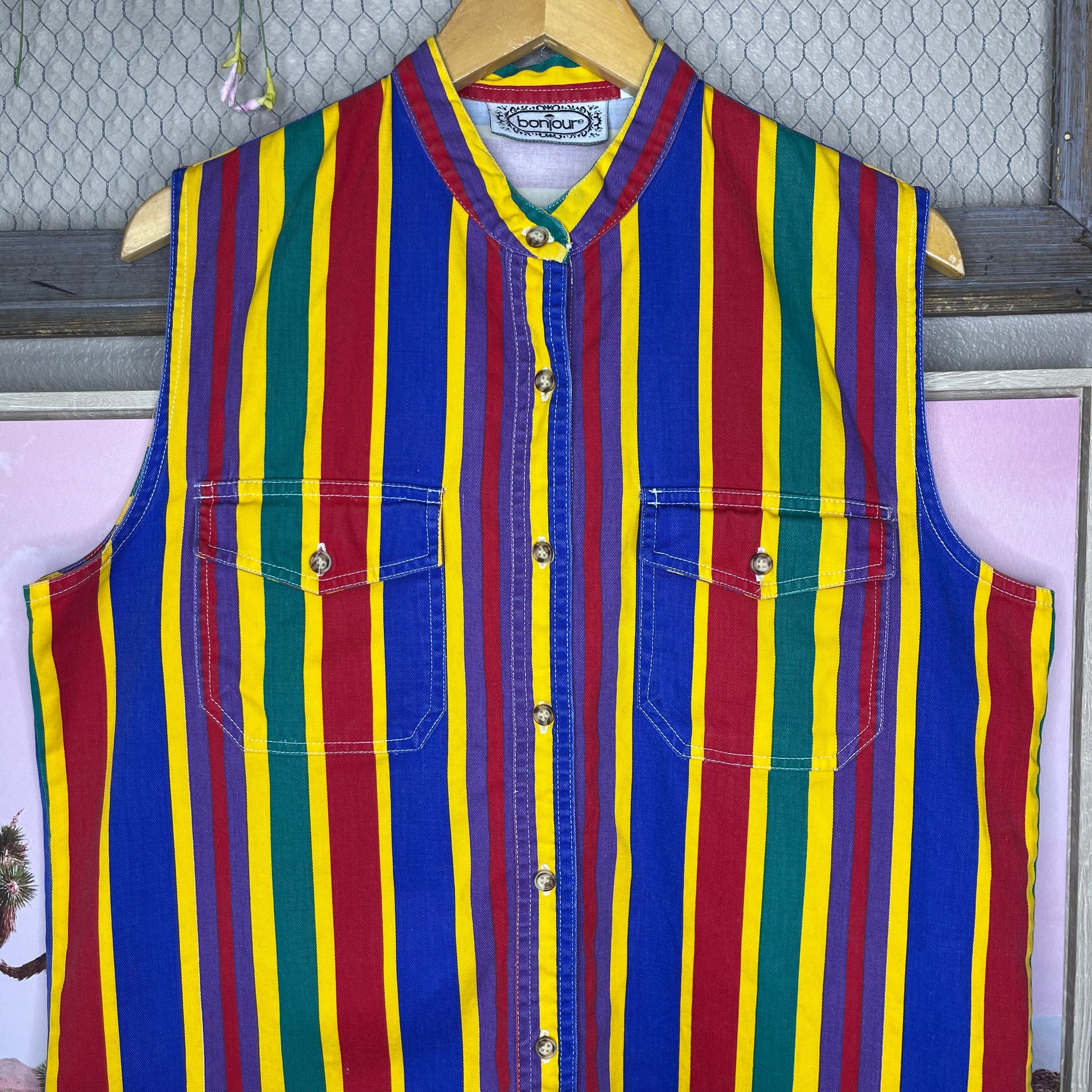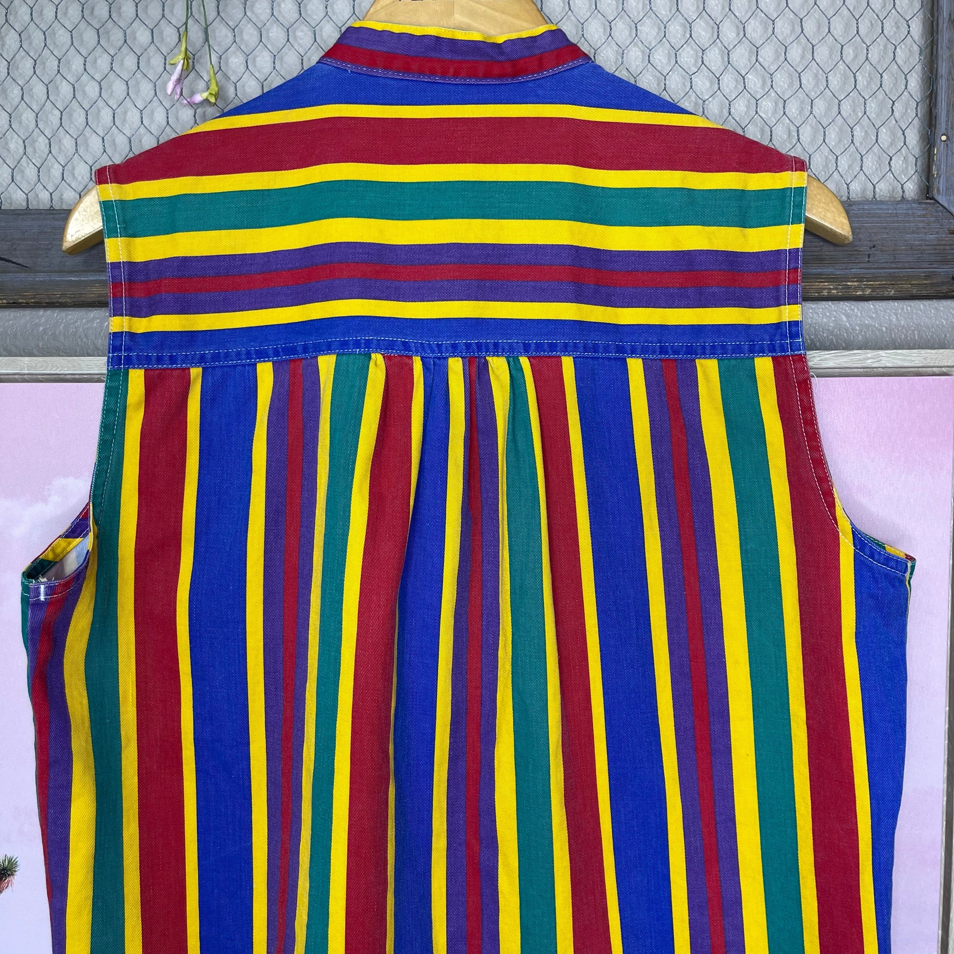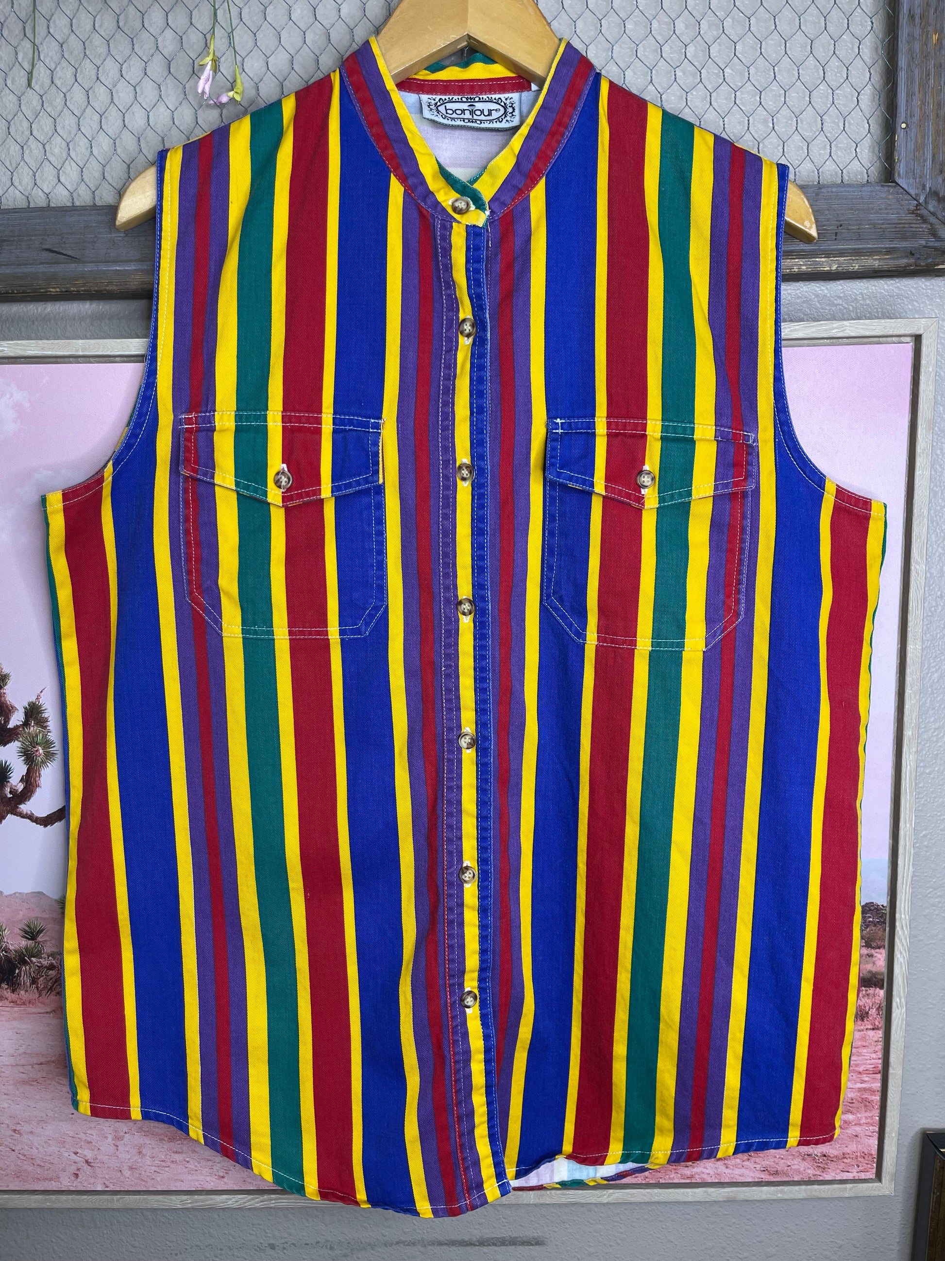 VINTAGE 80’S STRIPED SLEEVELESS BUTTON-UP